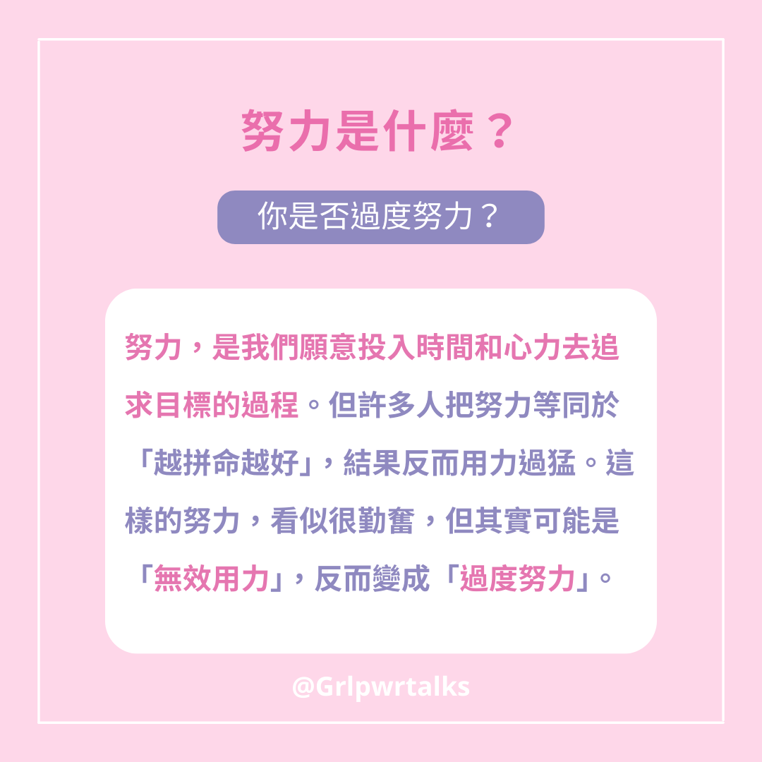 努力,是我們願意投入時間和心力去追求目標的過程。但許多人把努力等同於「越拼命越好」,結果反而用力過猛。就像有人準備考試時不斷死背公式,卻忽略了真正的理解;有人在職場裡拚命加班,卻沒有思考效率與重點。這樣的努力,看似很勤奮,但其實可能是「無效用力」,反而變成「過度努力」。